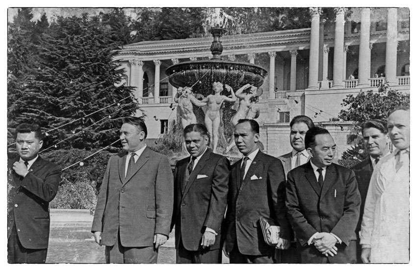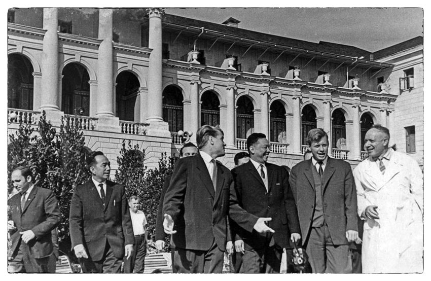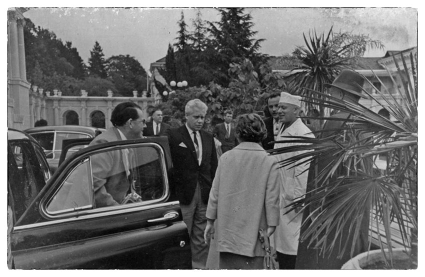 Ну и под занавес фотографии, которые мне достались от охранника санатория имени Парижской коммуны, именуемого ещё ранее Чайка, а после вошедшего в базовый санаторий Серго Орджоникидзе. Напечатаны они были форматом 18х24, хорошего качества, хотя время их и подпортило. На них запечатлены влиятельные персоны, которых в 50-60е годы 20-го века знало мировое сообщество: Джавахарлал Неру, принц Монако, горняки Англии, премьер-министр Англии Моддлинг,