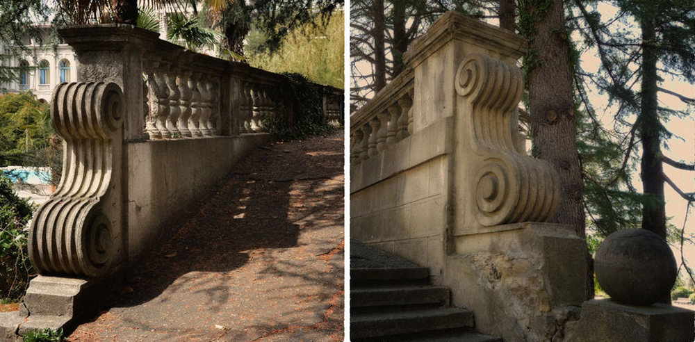 Далее проследуют фотографии не засвеченные в сети интернет, потому как те места мало кто посещал, не ведая о их существовании;) С обратной стороны главного корпуса можно было по лестнице иль в ея обход сверху попасть на аллею, ведущую к летнему кинотеатру, которых по всему Большому Сочи было столько много, что и пальцев на руках с ногами не хватит перечесть;) аура в них была своеобразная, не такая как в закрытых залах - когда одновременно с погружением в мир кино над головой внеземным светом горят звезды, а вокруг еще оглушительно цикадят цикады и во все направления совершают свои удивительные полеты огненные светлячки, которые уже лет 40 назад как покинули город моего детства ...